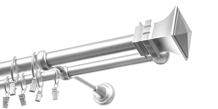 Jedinečný štýl celokovových galvanicky pokovovaných garníž a priemer 25mm / prvá tyč / a priemer 16 mm / druhá tyč / robí z týchto garníž jedničku pre interiéry kde je potreba zaujmout.Kvalitní prevedenie v odtieni matná strieborná podtrhuje najžiadanejšie trendy a preto aj Vy urobte krok správnym smerom a Zmodernizujte svoj interiér.Cena je uvedená za celý komplet (tyč, konzola, koncovky, krúžky, žabky, montážna sada do steny / vruty, hmoždinky /).