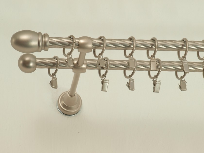 Moderný štýl garníž Twister pre moderné interiér.Celokovové garniže s jedinečným krúteným tvarom a decentnými koncovkami. Doprajte si luxus podľa najnovších trendov. Cena je uvedená za celý komplet.Tento komplet obsahuje / 2 ks twister tyčí, konzoly, koncovky, krúžky, žabky, sada pre upevnenie do steny /. Pri dĺžke nad 2,5 m je tyč zložená zo 2 * 2 ks a pridaná naviac stredová konzola a 2 * kovová spojka. Tento spoj nie je vidieť, pretože je schovaný v stredovej konzole.